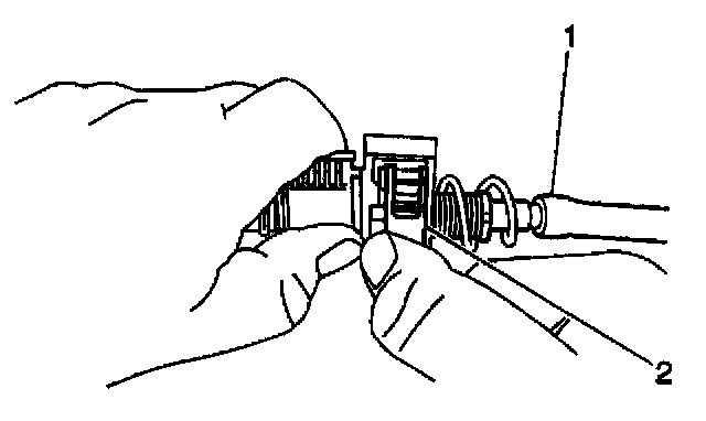Important: This step must be performed correctly to avoid a misadjusted cable. Do not grasp the shift cable end (2) during this procedure.