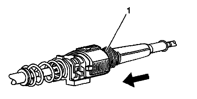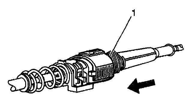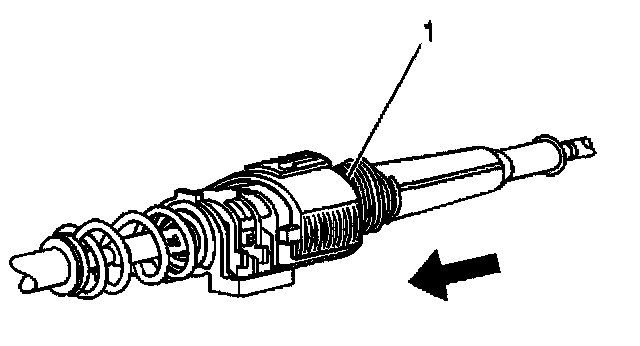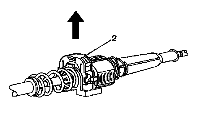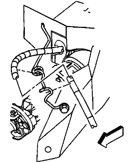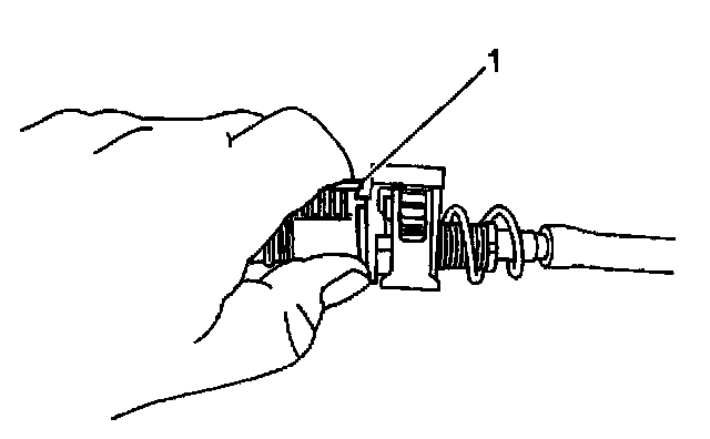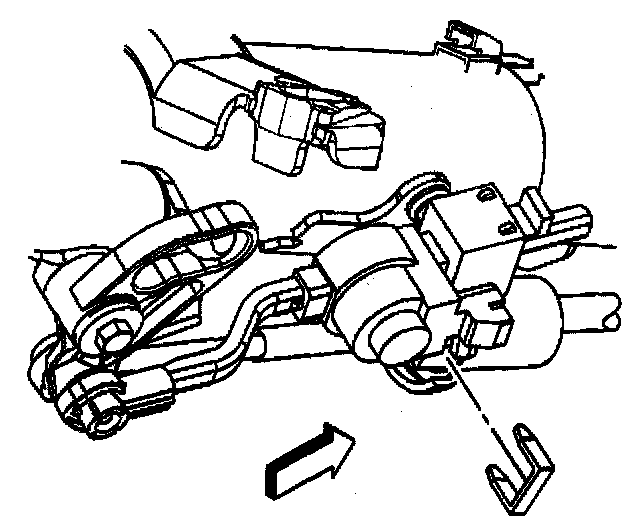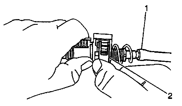 Depress both tangs on the conduit end fitting and push axially toward the rear of the vehicle.