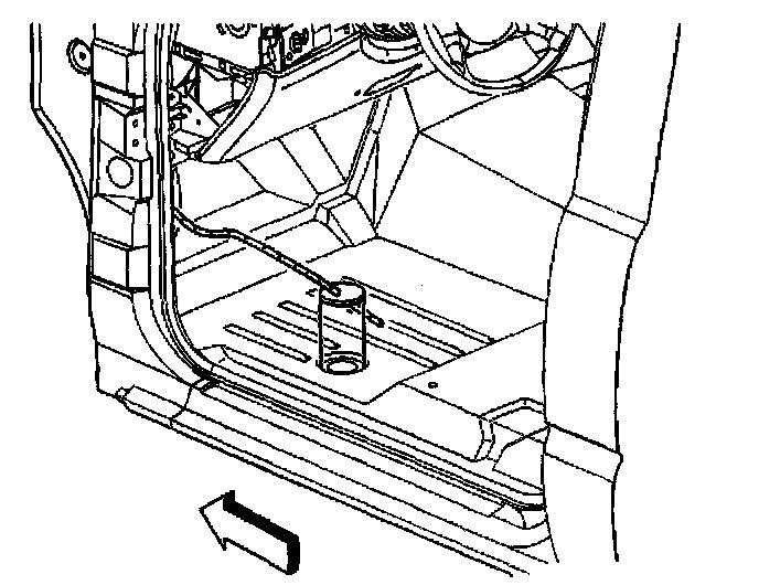 4. Route the shift cable through the hole in the floor panel. Install the shift cable grommet to the floor panel.