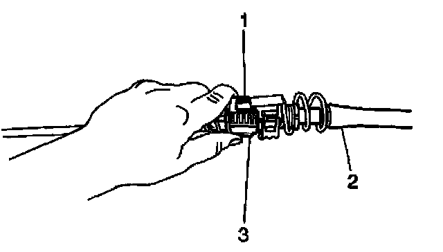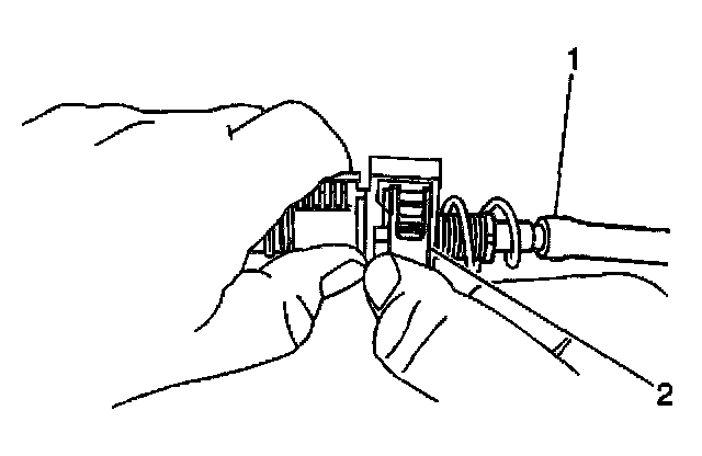 Important: This step must be performed correctly to avoid a misadjusted cable. Do not grasp the shift cable end (2) during this procedure.
