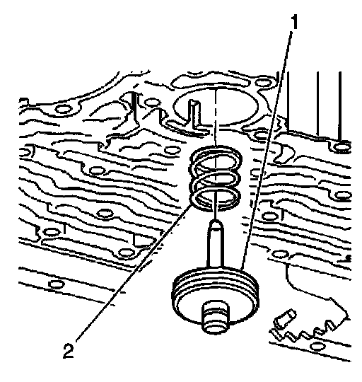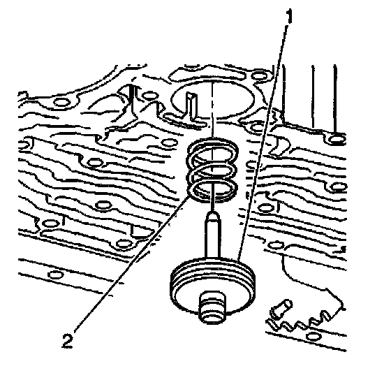 6. Install the manual 2-1 band servo piston cushion spring (2).