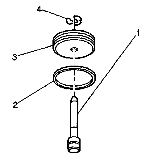 3. Install a new manual 2-1 band servo piston seal (2) onto the manual 2-1 band servo piston (3).