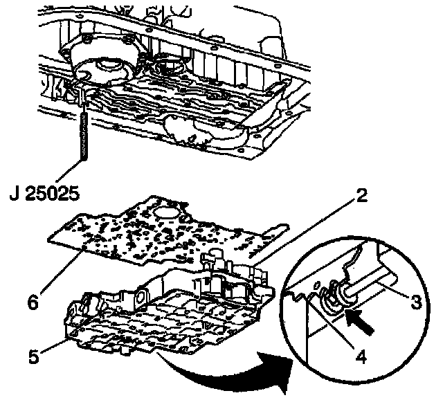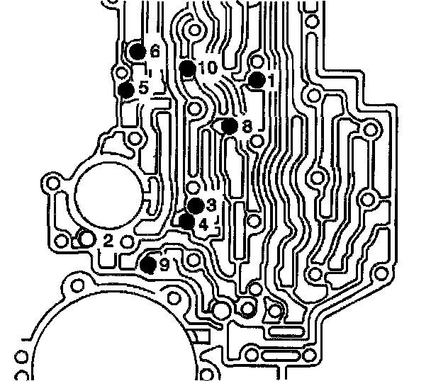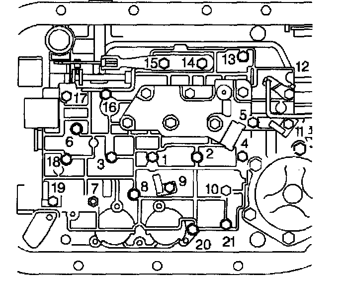 11. Install the control valve body assembly (5). Attach the manual valve to the detent lever while installing the control valve body assembly.