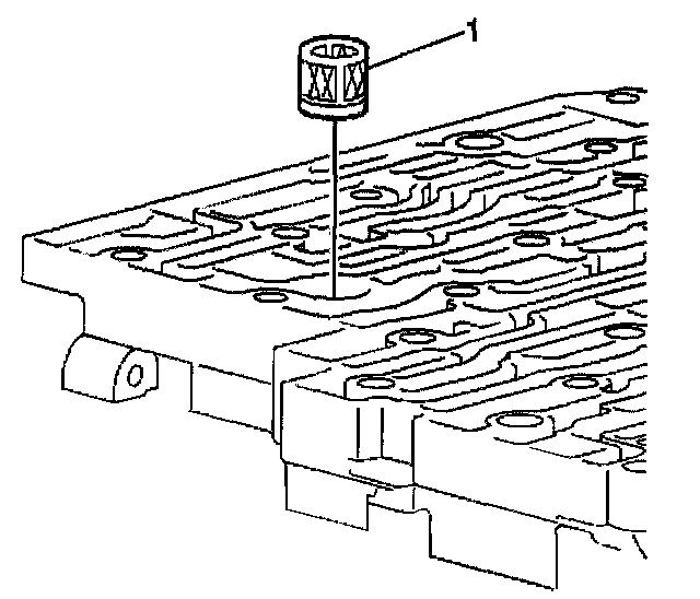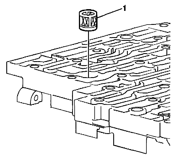 15. Remove the pressure control solenoid valve fluid filter (1).