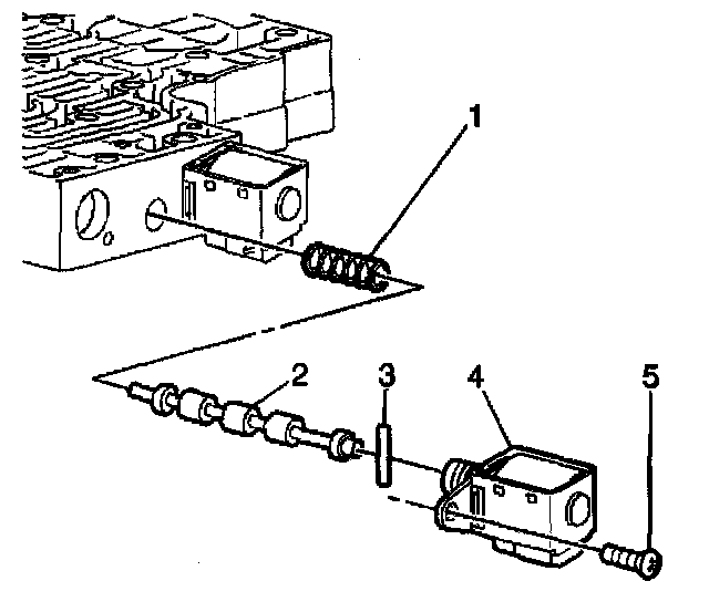 27. Remove the 2-3 shift solenoid valve bolt (5).