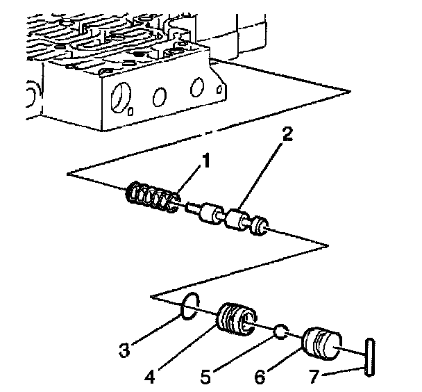 Important: Ensure that the tapered end of the manual 2-1 band servo piston pin contacts the manual 2-1 band.