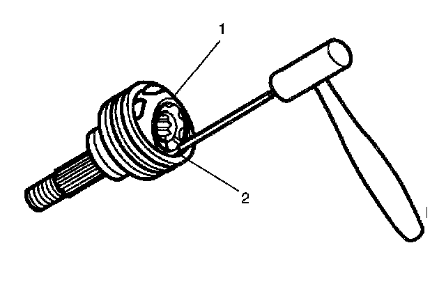 7. Place a brass drift against the CV joint cage (1).