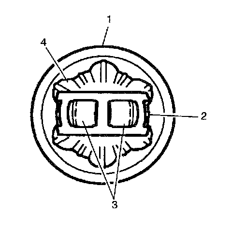 15. Pivot the CV joint cage (4) and the inner race 90 degrees to the center line of the outer race (1). At the same time, align the cage windows (3) with the lands of the outer race (2).