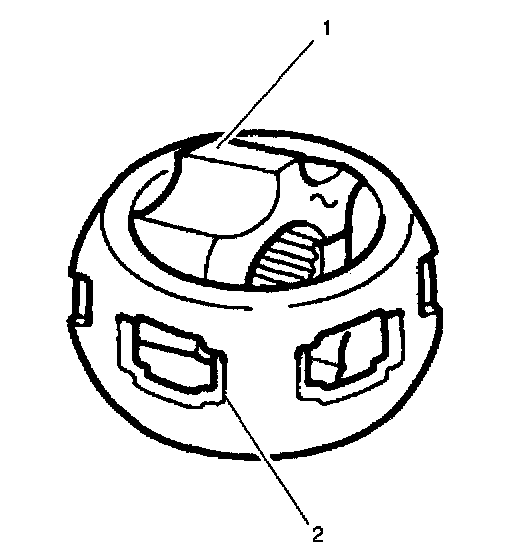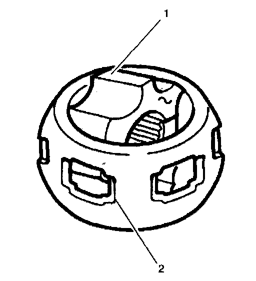 17. Remove the inner race (1) from the cage (2) by rotating the inner race (1) upward.