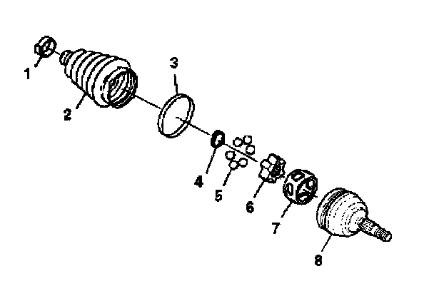 1. Inspect all of the parts for unusual wear, cracks, or other damage. Replace the CV joint assembly if necessary.