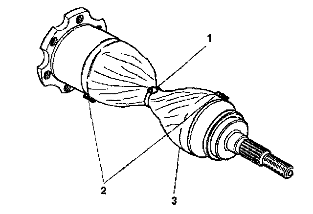 1. Use side cutters to cut the halfshaft seal cover clamps (2) and the nylon strap (1).