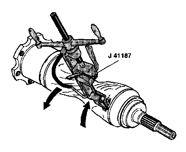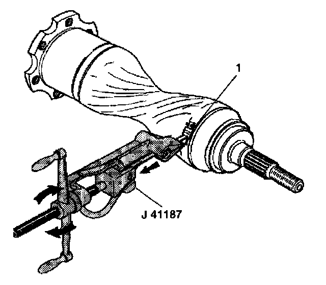 10. Use J 41187 in order to tighten the outboard cover clamp (1).