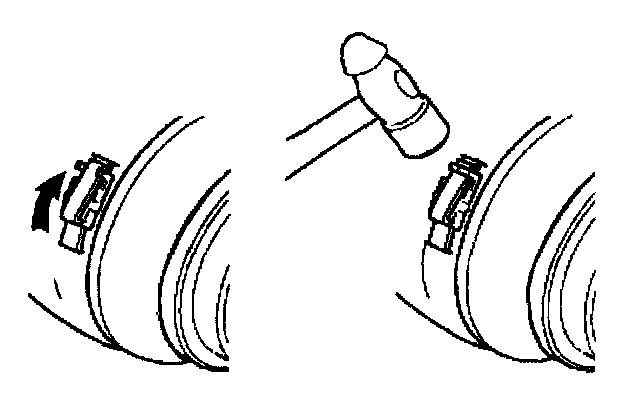 13. Pound the band flat between the latch tabs. Peen the latch tabs over in order to lock the band into position.