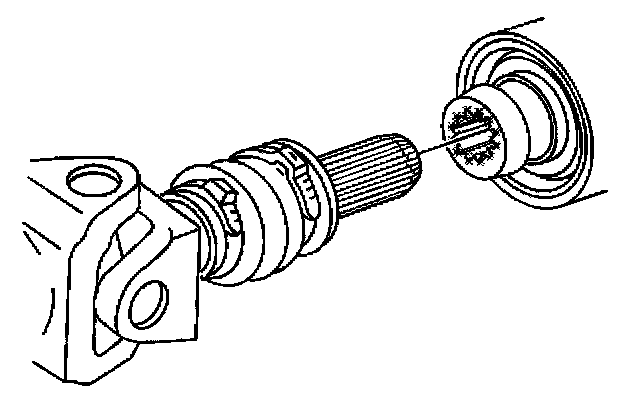 1. Inspect the splines of the transfer case output shaft for a sufficient coating of grease. If the output shaft does not have a sufficient coating of grease, lubricate the shaft with grease (GM P/N 12345879 or equivalent).