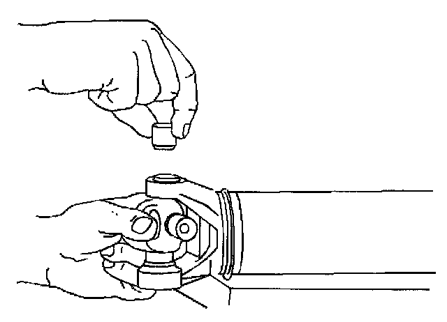 9. Remove the remaining universal joint parts from the yoke. If you are replacing the front universal joint, remove the bearing cups in the slip yoke in the same manner.