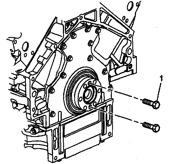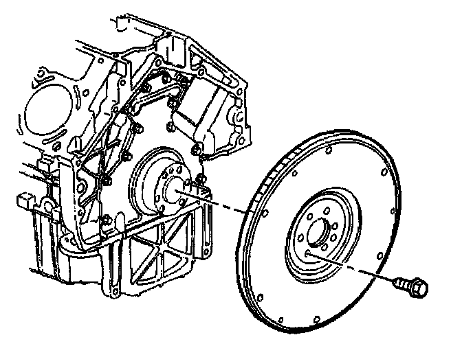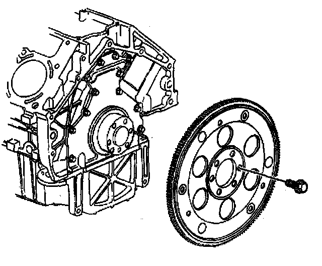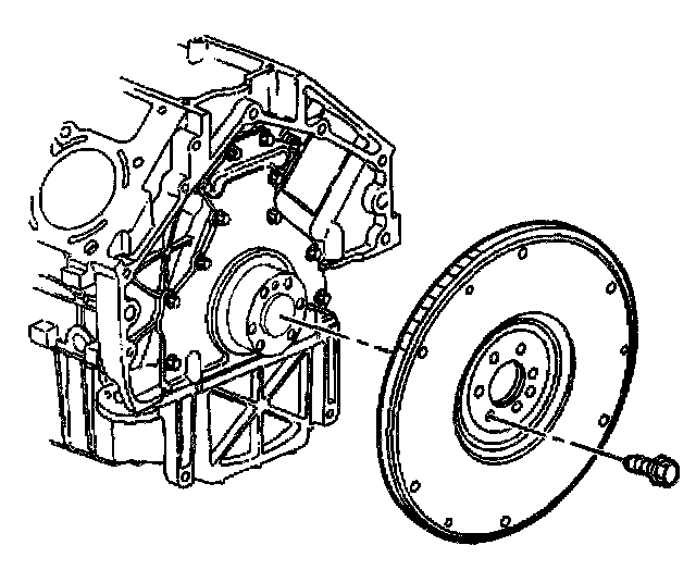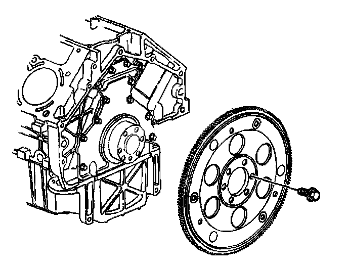 4. Apply threadlock GM P/N 12345382 or equivalent to the threads of the flywheel bolts.