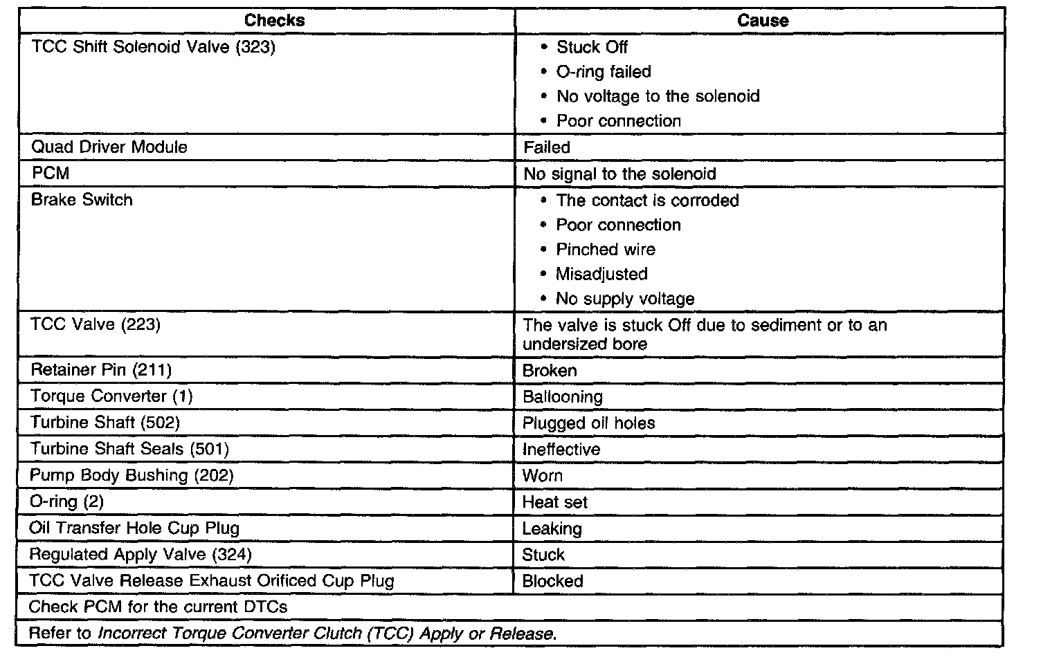 No Torque Converter Clutch (TCC) Apply