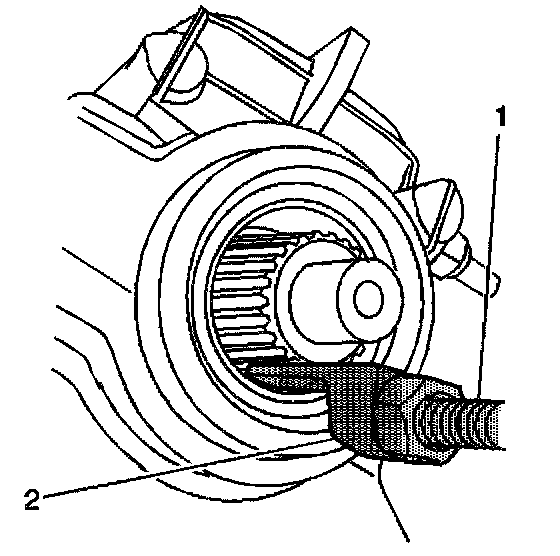 4. Remove the rear oil seal from the rear case using the J 6125-B (1) and the J 23129 (2).