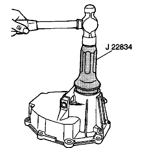 1. Using J22834 install the new rear oil seal into the extension housing.