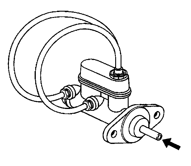 7. Using a smooth, round-ended tool, depress and release the primary piston as far as it will travel, (a depth of about 25 mm [1 inch]), several times. Observe the flow of fluid coming from the ports.