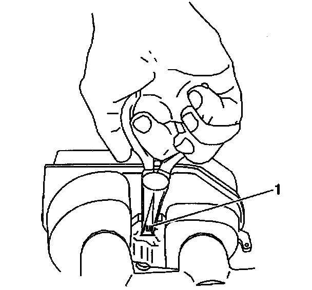 2. Remove the fluid level sensor (1). Use a needle nose pliers in order to compress the locking tabs at the opposite side of the master cylinder.