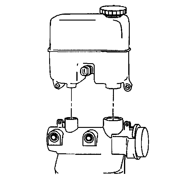 1. Install the master cylinder reservoir to the master cylinder by pushing the reservoir into the master cylinder bores. Apply pressure until the master cylinder reservoir snaps into place.