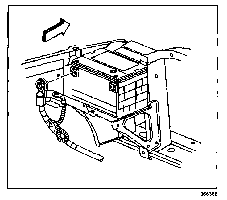 3. Disconnect the battery ground (negative) cable and bolt from the battery.