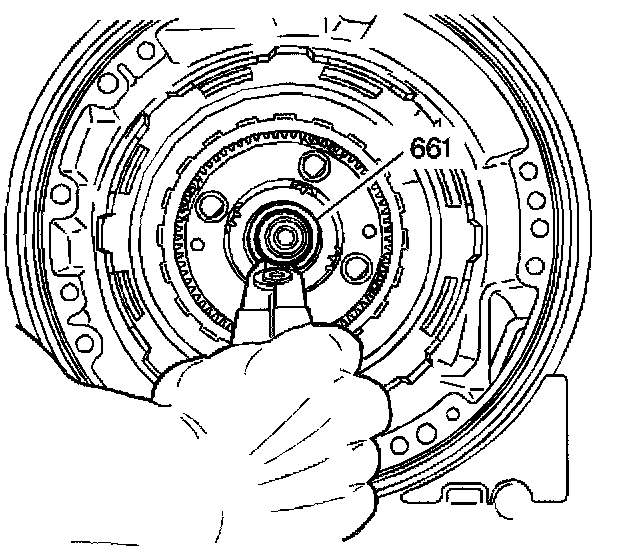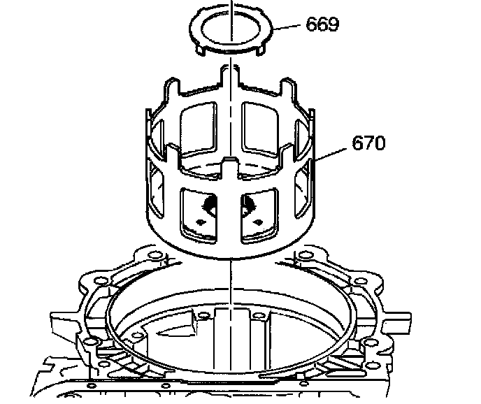 4. Remove the thrust washer (669) and the reaction sun shell (670).