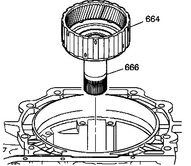 3. Remove the input internal gear (664) and the reaction carrier shaft assembly (666).