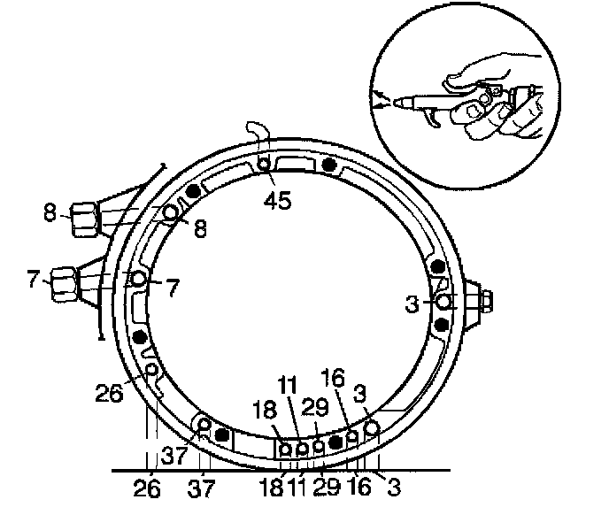 2. Using compressed air, blow into all of the case fluid passages (3, 7, 8, 11, 16, 18, 26, 29, 37, 45) to ensure that all case fluid passages are clear of any obstruction.