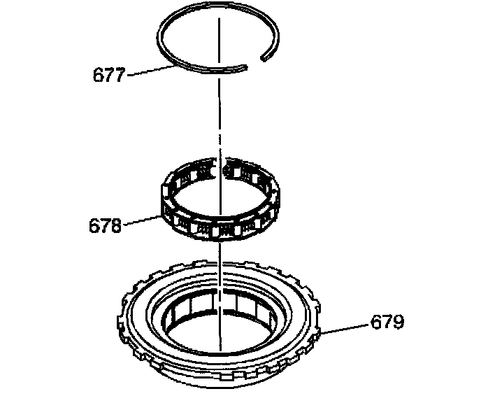 4. Clean and install the low and reverse roller clutch assembly (678) into the low and reverse clutch support (679). Install the low and reverse retainer ring (677).