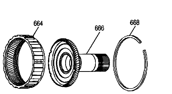1. Remove the reaction carrier shaft/internal gear retainer (668) and the reaction carrier shaft (666) from the input internal gear (664).