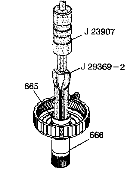 3. Using J 29369-2 with J 23907, remove the reaction carrier shaft front bushing (665).