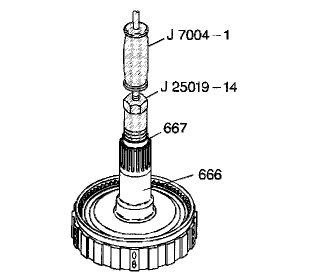 4. Using J 25019-14 with J 7004-1, remove the reaction carrier shaft rear bushing (667).