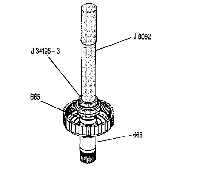 1. Using J 34196-3 with J 8092, install a new reaction carrier shaft front bushing (665).