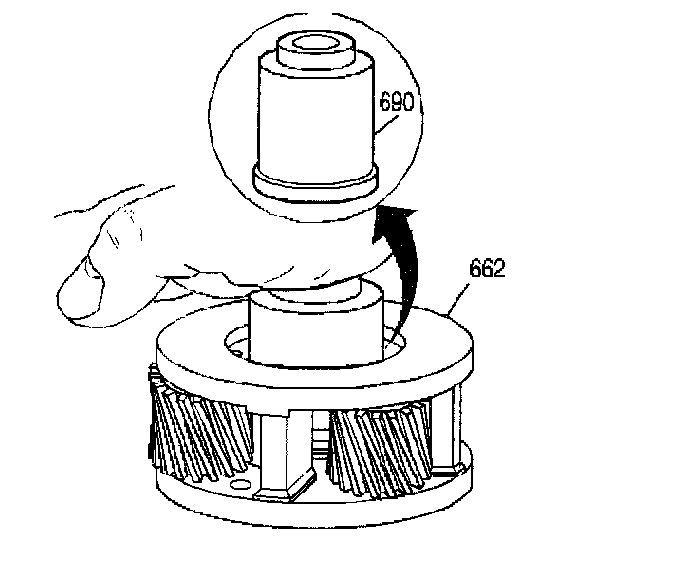 1. Inspect the input carrier captive thrust bearing assembly. To check the captive thrust bearing in the input carrier (662) for wear, place a bushing or an output shaft sleeve (690) onto the bearing race and turn it with the palm of your hand. Do not touch the pinion gears. Any imperfections will be felt through the bushing.