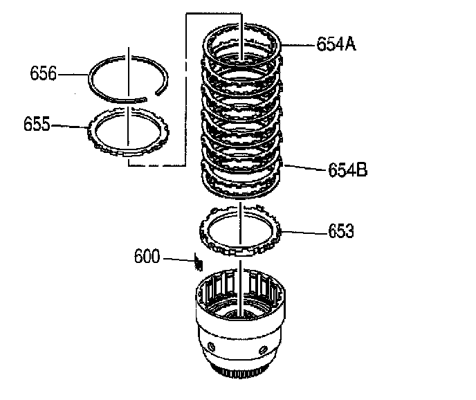 5. Remove all 3rd and 4th clutch plates (653-655).