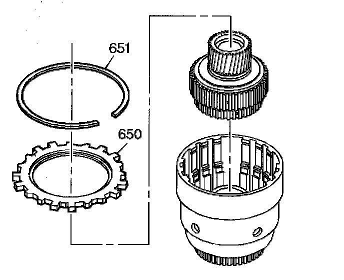 4. Remove the 3rd and 4th clutch backing plate retainer ring (656).