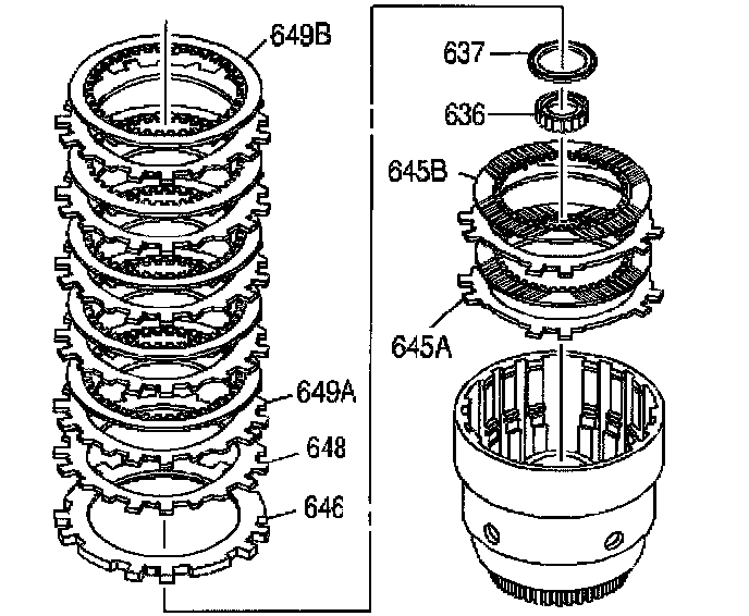 10. Remove all forward clutch plates (646, 648, 649A,649B).