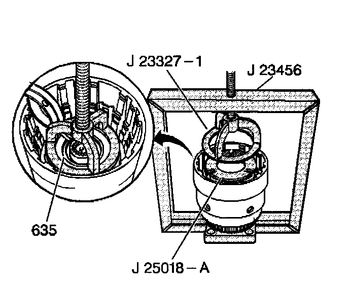 16. Remove the overrun clutch spring retainer snap ring (635).