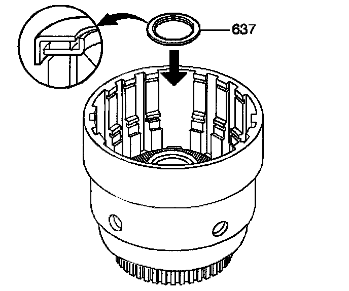 4. Install the input sun gear bearing assembly (637) into the input housing.