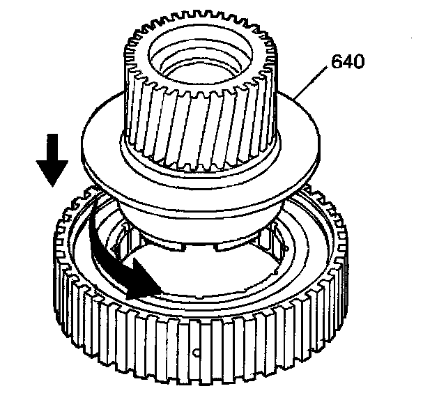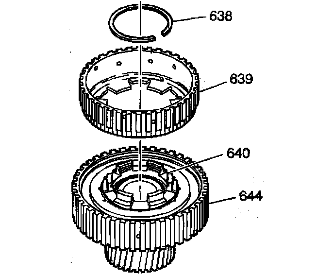 9. Install the overrun clutch hub (639) onto the sprag clutch inner race and input sun gear assembly (640).