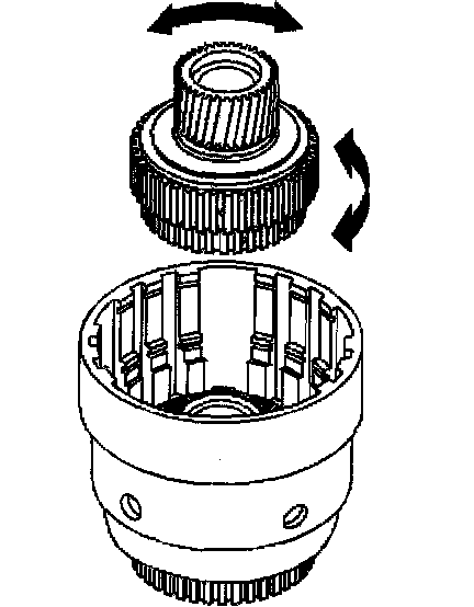 11.2. Hold the forward sprag clutch outer race with one hand and rotate the input sun gear with the other hand.