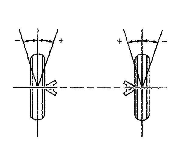 Toe also offsets the small deflections of the wheel support system that occur when the vehicle is rolling forward. In other words, with the vehicle standing still and the wheels set with toe-in, the wheels tend to roll parallel on the road when the vehicle is moving.