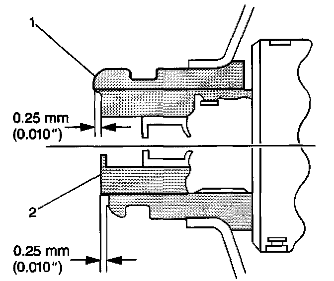 3. Ensure that the power steering pump pulley is flush against the power steering pump shaft, with an allowable variance of 0.25 mm (0.010 inch).
