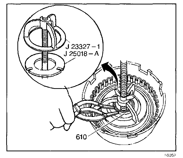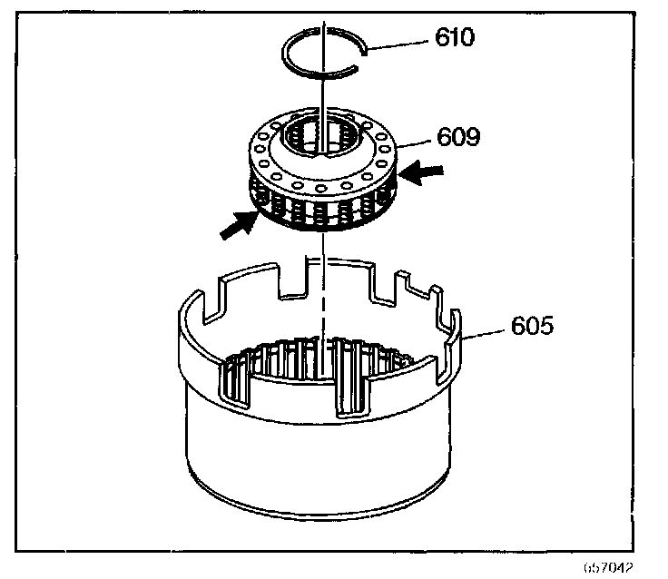 6. Inspect the reverse input clutch spring assembly (609) for distortion or damage.