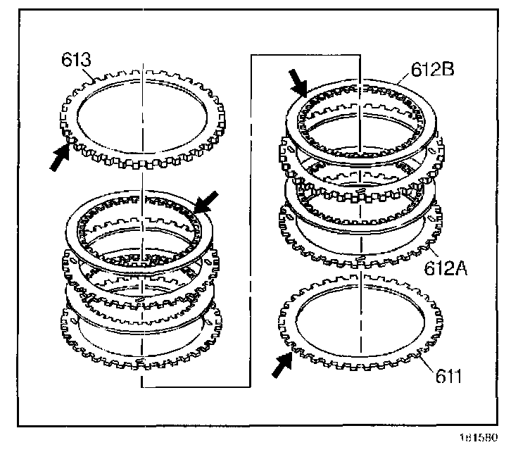 12. Install the reverse input clutch plates starting with a steel turbulator plate (612A) and alternate with a fiber plate assembly (612B).