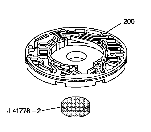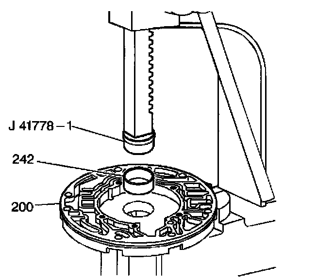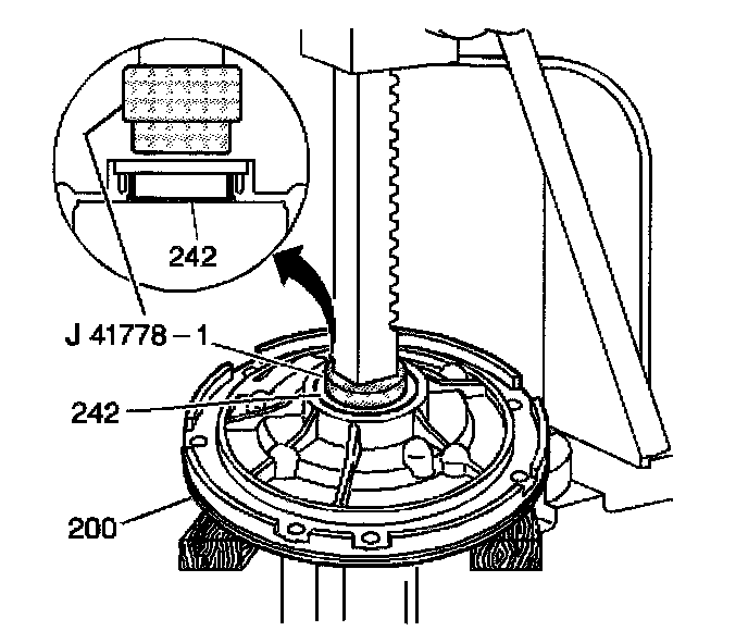 4. Using the J 41778-1 with an arbor press, remove the pump body bushing (242).