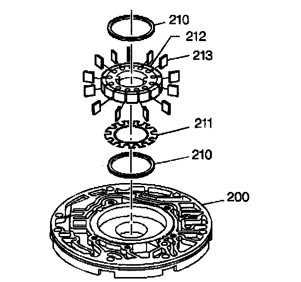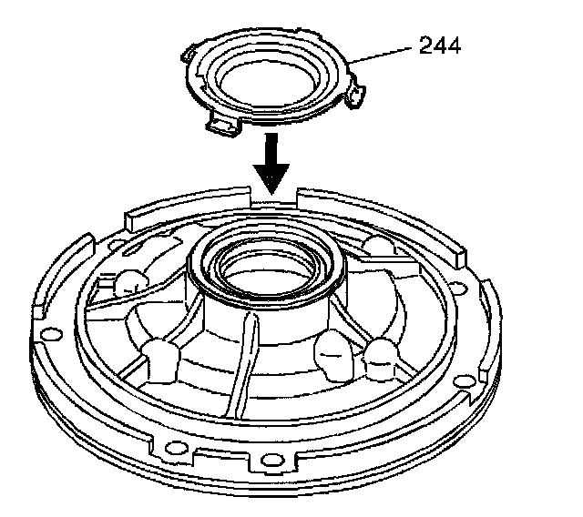 10. Install the bottom pump vane ring (210) and the rotor guide (211) into the rotor (212) and retain with J 36850 or an equivalent.
