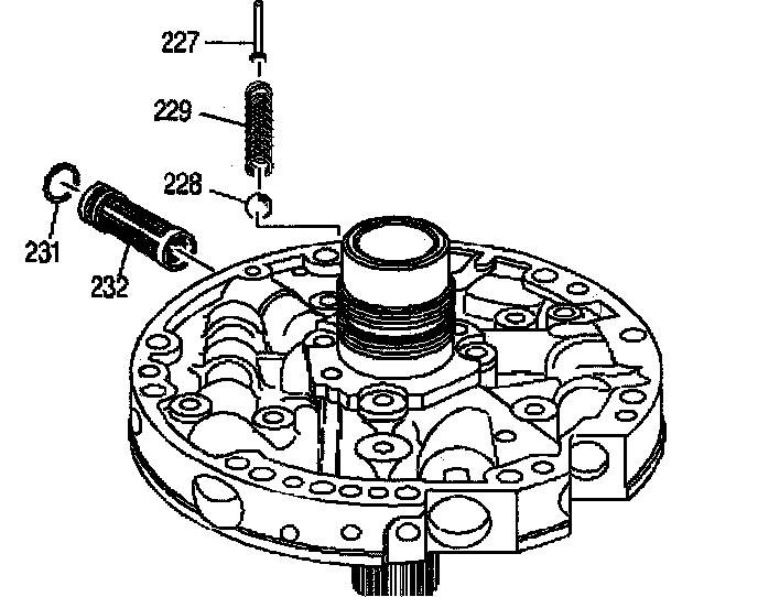 4. Install the pressure relief ball (228) and pressure relief spring (229).